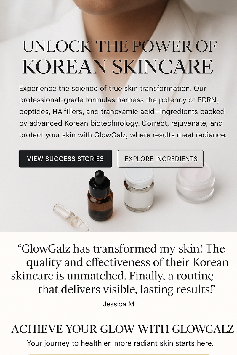 Welcome to GlowGalz, where radiant skin begins. Our handpicked selection of professional-grade Korean skincare blends the wisdom of a licensed esthetician with the precision of modern science. Every product is chosen to correct, rejuvenate, and protect your skin, supporting long-term health and a luminous glow.